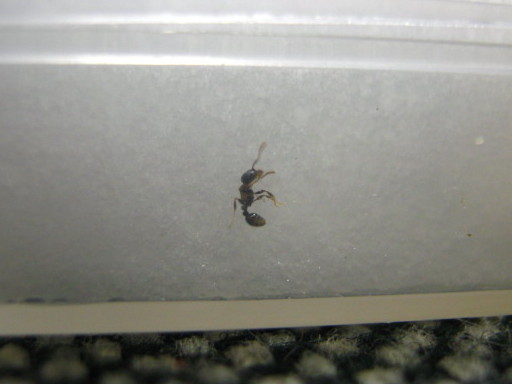 トビイロシワアリの様子を見ると、2mmくらいのワーカーが一匹おりました。