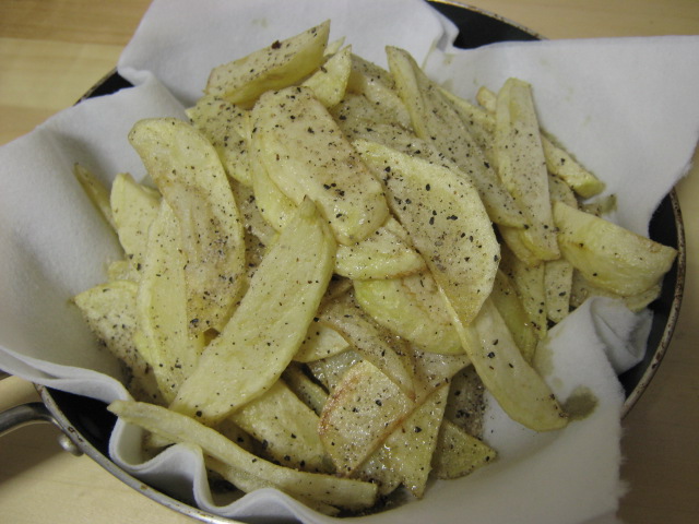 適当なサイズに切って、揚げて塩胡椒ふって食べたよー。