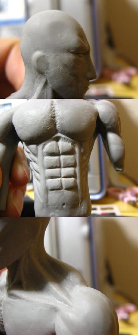 後頭部、腹筋、脇腹、肩を修正中です。